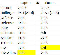 The tale of the tape is below. You can expect an iso-heavy attack from the Pacers that will see them spend a lot of time at the line. If Bargs’ can’t go, the team is simply too undermanned to keep up. Ed Davis and Amir Johnson will likely be in foul trouble against Roy Hibbert and David West, while Danny Granger and Paul George shouldn’t face too much opposition on the wings. DeMar DeRozan had a horribly inefficient game against the Thunder, and with George having become a premiere wing defender in just his sophomore season, he could be in for another rough night. Jose might be able to score with Darren Collison, but it won’t matter much.